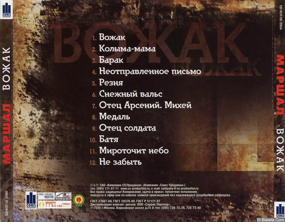 Альбом «Вожак» (2004) Александра Маршала — это сборник песен, в которых гармонично переплетаются темы мужской дружбы, военных воспоминаний и глубокой лирики. Каждая композиция пронизана сильными эмоциями и яркими образами, что делает альбом интересным для широкого круга слушателей.