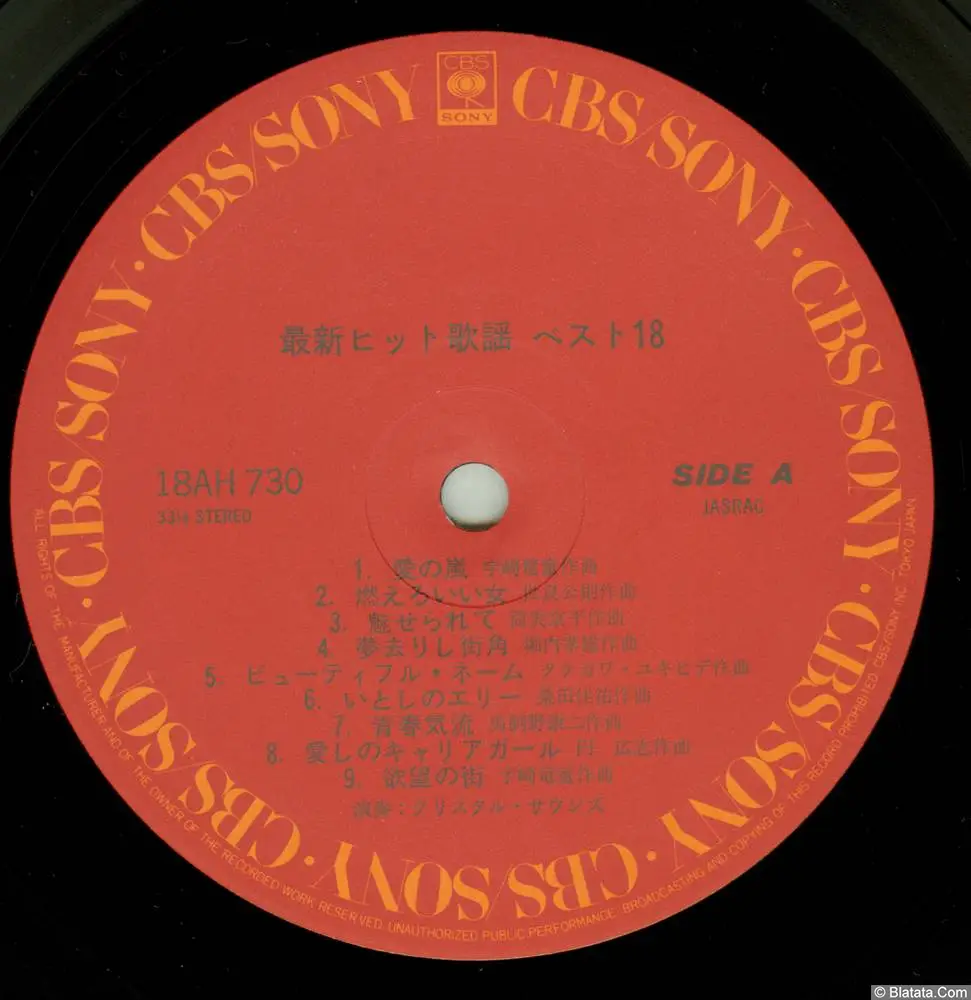 Виниловый альбом Best Hits 18 — часть популярной японской серии CBS/Sony, посвящённой актуальным хитам жанров kayōkyoku / enka в инструментальном, оркестровом исполнении. Проект Crystal Sounds предлагает «чистые» аранжировки без ведущего вокала, ориентированные как на караоке-использование, так и на спокойное easy listening. Подборка отражает вкусы конца 1970-х годов: городская лирика, любовные баллады и эстрадные шлягеры с аккуратной ритм-секцией и выразительными струнными.