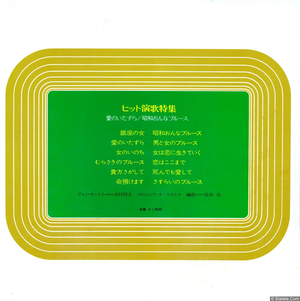 Виниловая пластинка 「愛のいたずら/昭和おんなブルース」 — инструментальный альбом из серии ヒット演歌特集 («Хиты энка»), записанный в характерной для эпохи Сёва манере. Ведущий инструмент — альт-саксофон, солирует 河村利夫, в сопровождении Columbia Orchestra, аранжировки — 佐伯亮.