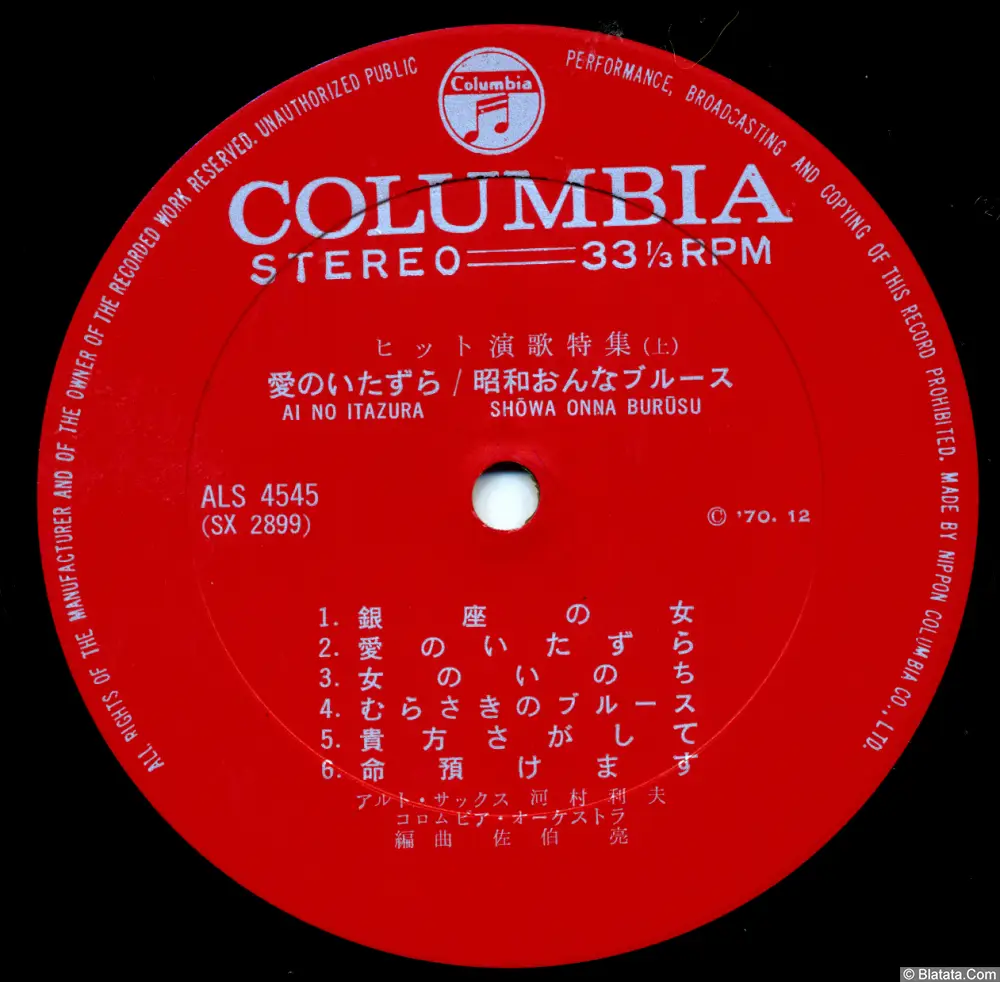 Columbia Orchestra - Special Enka hit. Ai No Itazura. Showa Onna Burusu (1970) ALS-4545