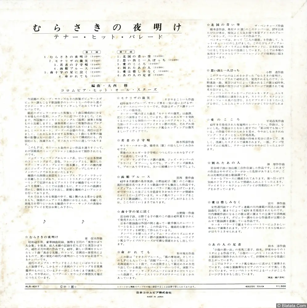 Виниловая пластинка 「むらさきの夜明け」 (Murasaki no Yoake / «Фиолетовый рассвет») — инструментальный альбом из серии Tenor Hit Parade, выпущенный японской компанией Nippon Columbia в конце 1960-х годов. Альбом представляет собой подборку популярных японских эстрадных и энка-композиций, исполненных в инструментальной манере с ведущей партией тенор-саксофона.