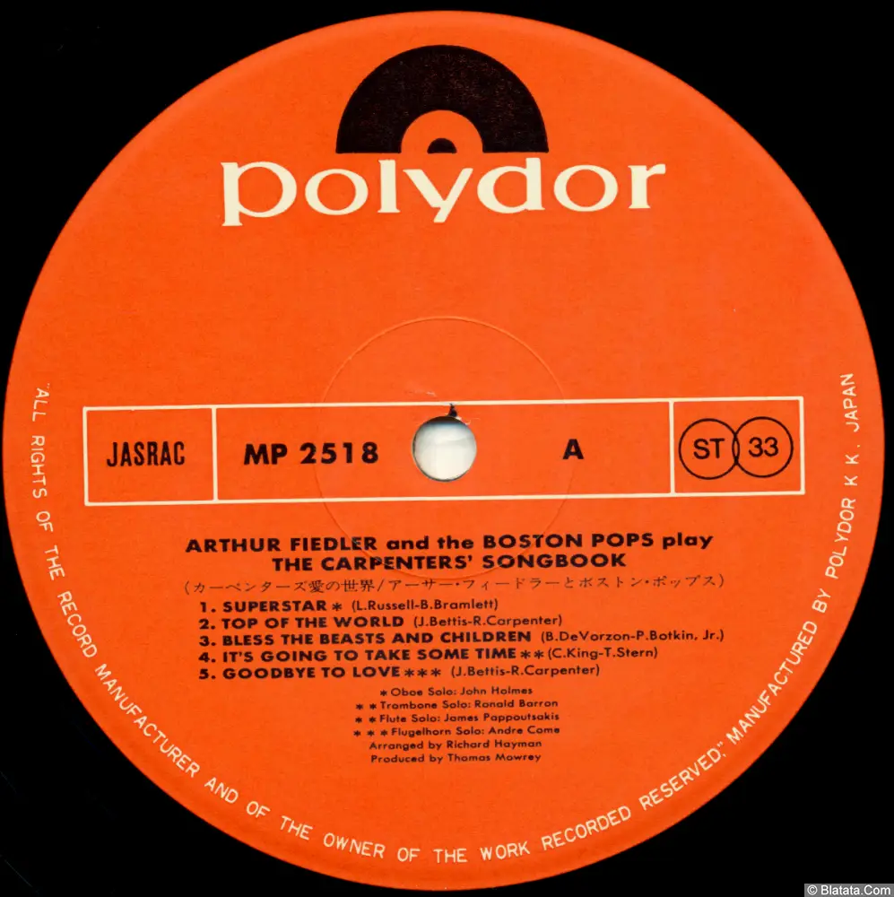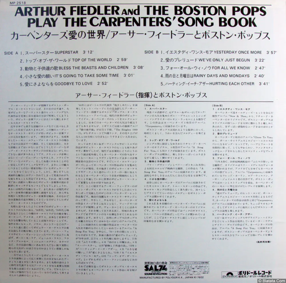 Arthur Fiedler And The Boston Pops - Play The Carpenters' Song Book (1976) MP-2518