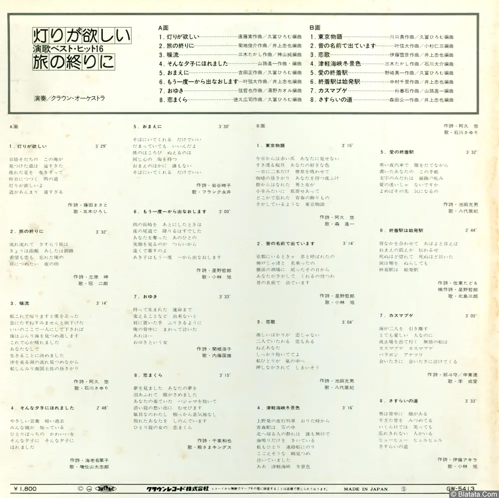Crown Orchestra - Enka Hit Melodies Best 16 (1978) GW-5413