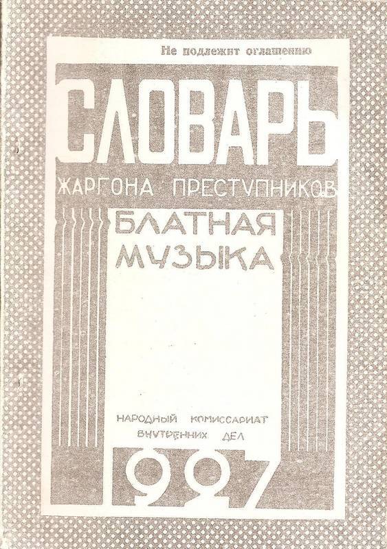 Есть в названии это милицейского справочника пророческая фраза «блатная музыка», так иногда называли феню в начале ХХ-го века. Выпустил ее Народный комиссариат внутренних дел, да-да, печально известный НКВД под грифом «Не подлежит оглашению».