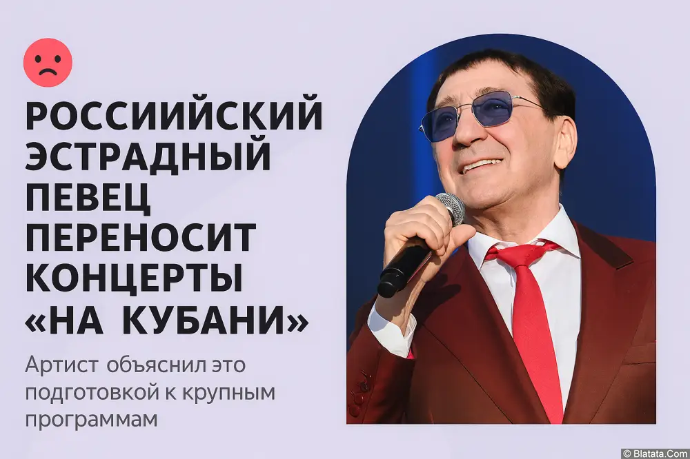 Российский эстрадный исполнитель Григорий Лепс объявил о переносе двух концертов, запланированных на курортах Краснодарского края — в Сочи и Геленджике. Причиной стали масштабная подготовка к сольным шоу в Санкт-Петербурге (15 июля) и Москве (16 июля), а также изменение логистики.
