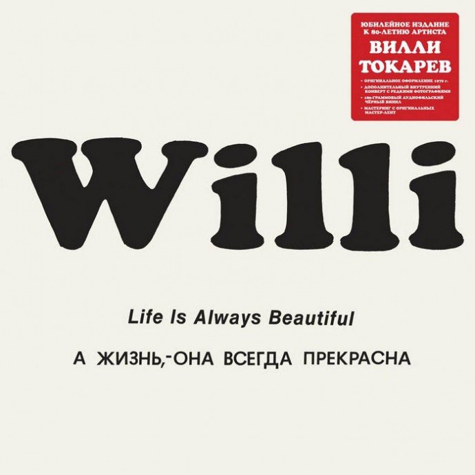Одна из российских издающих компаний в честь 80-летия со дня рождения легенды русского шансона Вилли Токарева решила сделать подарок всем его поклонникам и переиздать его самую первую пластинку «А жизнь – она всегда прекрасна», которая некогда выходила в США. Вышла она в 1979 году, с тех Вилли Иванович издал десятки альбомов и авторских сборников, которые разошлись миллионными тиражами по миру…