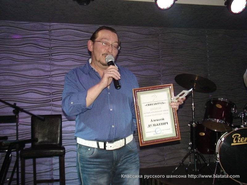 ДУЛЬКЕВИЧ АЛЕКСЕЙ ВАСИЛЬЕВИЧ (р. 26.03.1953 г.) — скрипач и вокалист, родился в семье известных ленинградских артистов. В 1970 г. закончил специальную музыкальную школу для особо одарённых детей — 10-летку при Ленинградской Государственной консерватории (скрипка). С 1969 г. по 1972 г. — танцор, скрипач и вокалист в цыганском ансамбле п/р А. В. Дулькевича-старшего (дед) в Ленинградской областной филармонии.