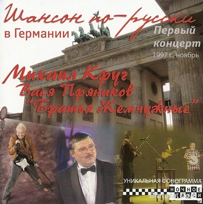Этот диск выходил в Германии в 1998 году и до сих пор был совершенно не доступен российскому слушателю, ходил только по рукам коллекционеров в пиратских копиях и версиях. Теперь можно спокойно пойти и купить его. Исполнители – Николай Резанов, Алеша Дулькевич, Вася Пряников и Михаил Круг. Как ни крути, диск раритетный и коллекционный уже изначально. Сейчас он ремастирован, издан для широкой публики и уже по достоинству ею же и оценен. Что об этом диске долго рассказывать? Запись с концерта в Берлине, где выступали русские шансонье в рамках проекта студии «Ночное такси», подобное было повторено только в мае 2008 года, скоро мы увидим видео недавнего концерта. Будем надеяться, что и съемки с концерта 1997 года легендарных шансонье мы тоже увидим когда-нибудь. Стоит найти и купить этот диск для своей коллекции.