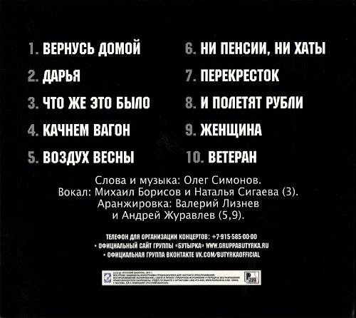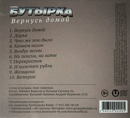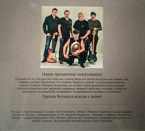 Это новый альбом группы «Бутырка», первый без солиста и композитора Владимира Ждамира, который все же покинул группу, теперь здесь новый вокалист – Михаил Борисов. Произошло это осенью 2013 года и вот уже публике представлена новая пластинка «Вернусь домой» и группа уже начала гастролировать в поддержку нового диска.