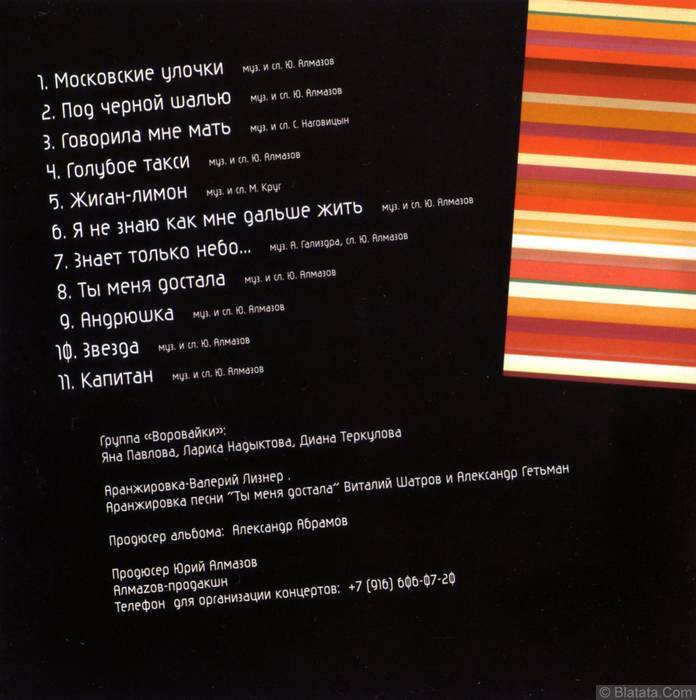 Для группы «Воровайки» это уже двенадцатый альбом – по эстрадным и шансонным меркам, это довольно приличный багаж, учитывая, что еще были акустический диск и пластинка ремиксов. Как сами певицы, так и их бессменный продюсер Юрий Алмазов ни на йоту не отступают от выбранного когда-то имиджа и стилистики – хулиганские хиты с труднопроизносимыми на широкую публику цитатами, а также всегда несколько лирических вещей и есть всегда абсолютно эстрадных вещей…