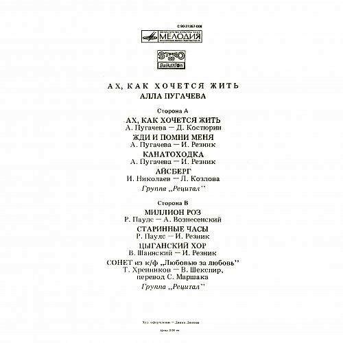 Песни «Канатоходка» и «Цыганский хор» не были записаны в студии: они были сделаны во время съемок концертной телепрограммы «Голубой огонек», состоявшейся в цирке на Цветном бульваре в декабре 1982 года.