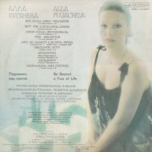 Автором фотографии, использованной на обложке альбома, является штатный фотограф Мосфильма Вячеслав Манешин, который часто фотографировал певицу в конце 1970-х и начале 1980-х годов. Фотографии были сделаны в августе 1979 года на балконе отеля «Ялта-интурист» в Ялте, где певец гастролировал в то время. Манешин и Пугачева согласились, что «вместо рыхлой гривы, к которой все уже привыкли, нужно удалить ее гладко расчесанными задними волосами. Эта и другие фотографии с этой фотосессии 1980-х годов часто печатались в журналах, плакатах, на игральных картах, календарях и других рекламных продуктах певца. В 2009 году некоторые фотографии были включены в фотоальбом «Alla Art», выпущенный к 60-летию певицы.