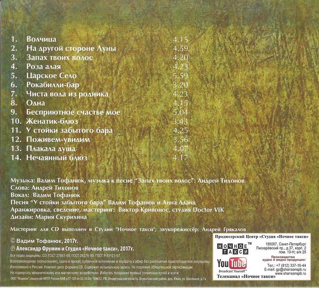 Вадим Тофанюк не изменяет ни себе, ни своей стилистике – это хороший городской русский рок… с мощным гитарным саундом, сильными поэтическими образами. О чем альбом? О любви, о дороге, о смысле жизни…