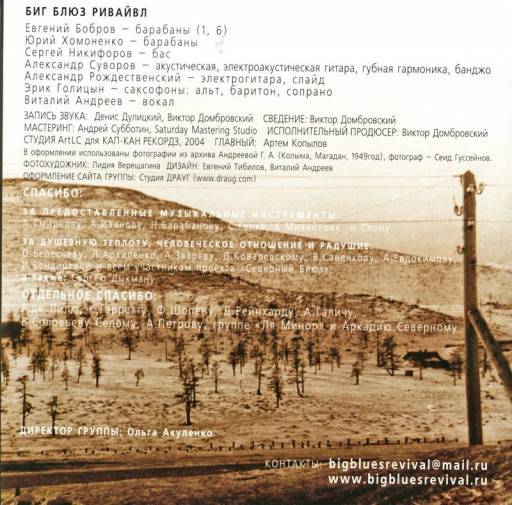 Приятная неожиданность! Появился еще один ансамбль, работающий в стиле классического блатняка, такая вот «Черноморская Чайка» с уклоном в джаз-рок. Само собой, альбом посвящен памяти Аркадия Северного. Из современных исполнителей наибольшее сходство с ансамблем «Ля-Миноръ». С ним и сравним. По уровню аранжировок, качеству записи и сведения фонограммы «Биг Блюз Ривайвл» если не уделывает «Ля-Миноръ», то, по крайней мере, ничуть не хуже, тем самым оправдывая уклон альбома в джаз. Современный джаз по другому просто нельзя записывать. Единственный минус альбома — излишняя гладкость и вымученность фонограммы, что, возможно, стало последствием кропотливой студийной работы. Если это так, то следующий альбом, если таковой планируется, будет еще интересней. Дорогое коллекционное издание с шестнадцати-страничным буклетом и другими наворотами.