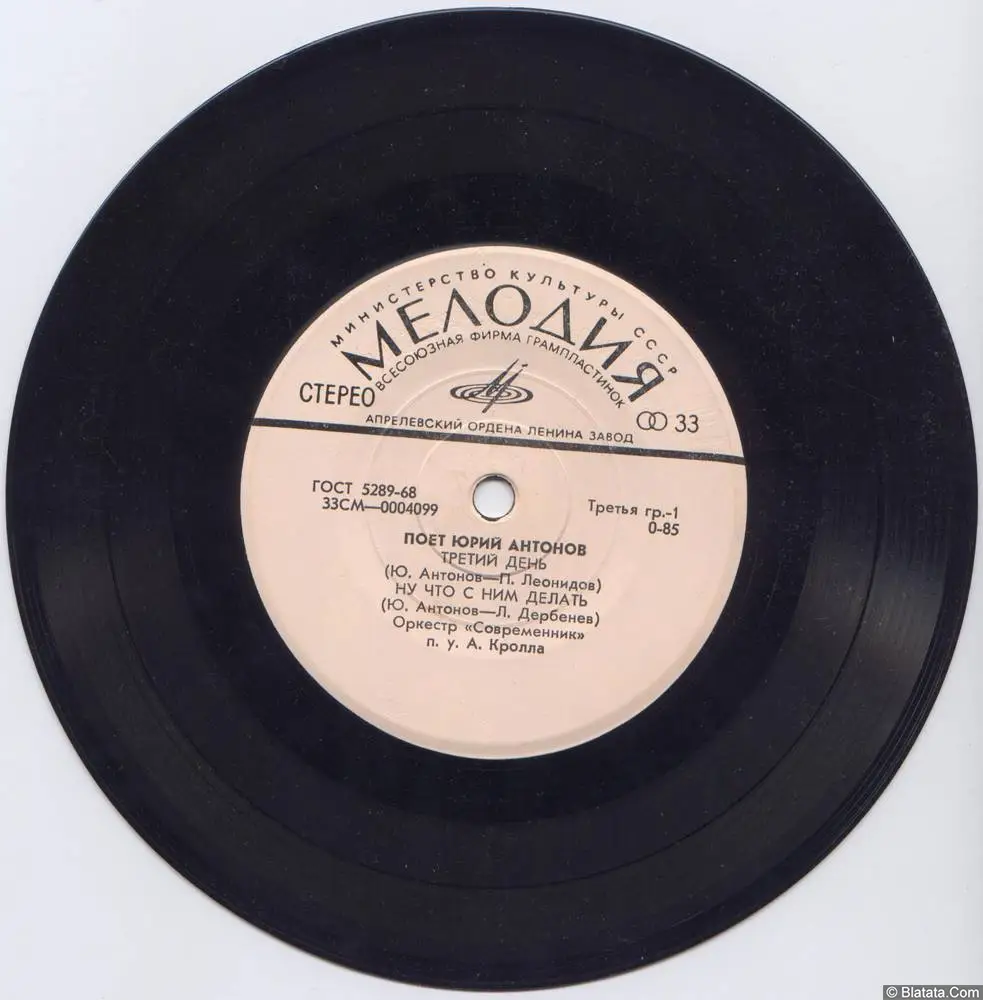 Редкая ранняя виниловая мини-пластинка Юрия Антонова, отражающая начальный этап его сольной карьеры. Запись выполнена с участием оркестра «Современник» под управлением Анатолия Кролла — одного из ключевых джазовых и эстрадных дирижёров СССР.
