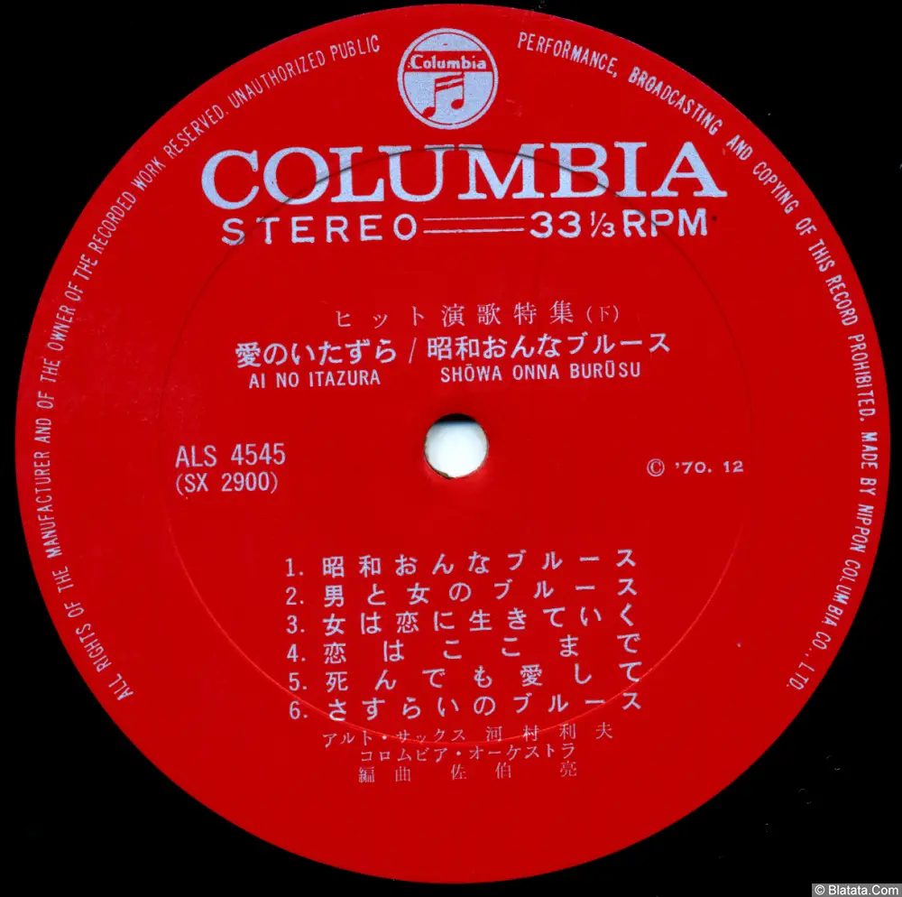 Columbia Orchestra - Special Enka hit. Ai No Itazura. Showa Onna Burusu (1970) ALS-4545