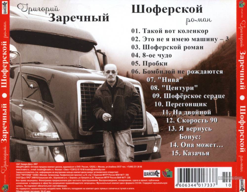 Главный исполнитель шоферского шансона Григорий Заречный уже много лет выпускает стабильные качественные альбомы. Диск «Шоферской роман» — не исключение. Песни, как и ранее, строго придерживаются шоферской тематики. Здесь долгожданная «Это не я имею машину-3», и про женщин за рулем «8-ое чудо», и давшая название альбому "Шоферской роман", и лирическая «Я вернусь». Все песни по своему хороши.